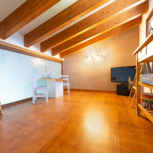 Dom składa się z 3 sypialni, 2 łazienek (w tym jednej typu en suite), garderoby, antresoli, pralni oraz przestronnego korytarza. Kuchnia połączona jest z jasnym salonem i jadalnią w stylu otwartym.